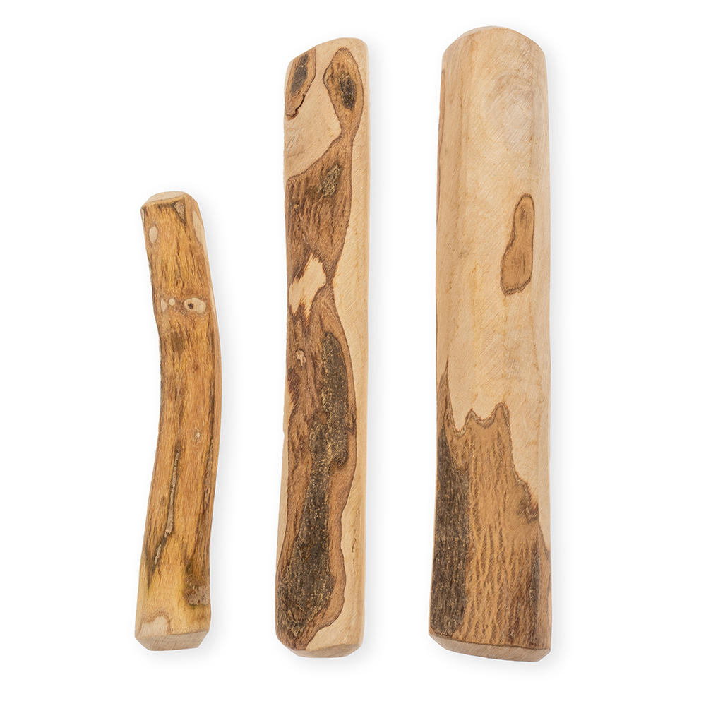Žvýkací tyčinky z olivového dřeva jsou k dispozici v různých velikostech pro různá plemena a hmotnost psů. Životnost tyčinky se pohybuje od 3 do 6 měsíců v závislosti na žvýkacích aktivitách psa.